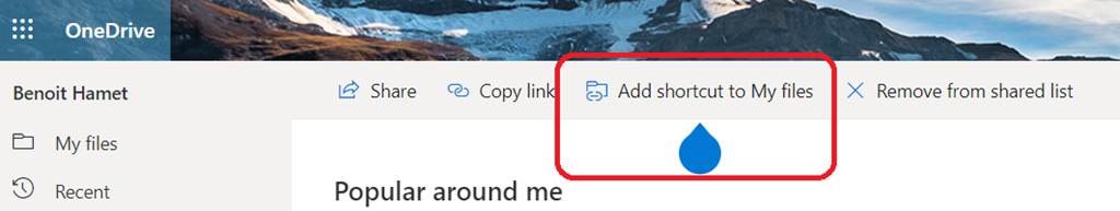 There select the shared content you wish to create a shortcut to and click the Add shortcut to My files button