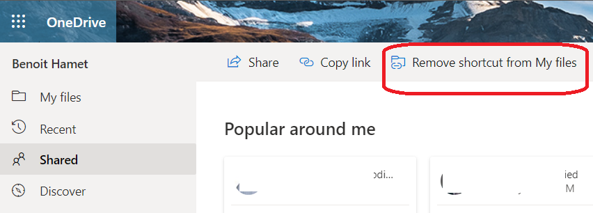 Then if you want to remove the shortcut, repeat the above steps but this time you will have Remove shortcut from My files