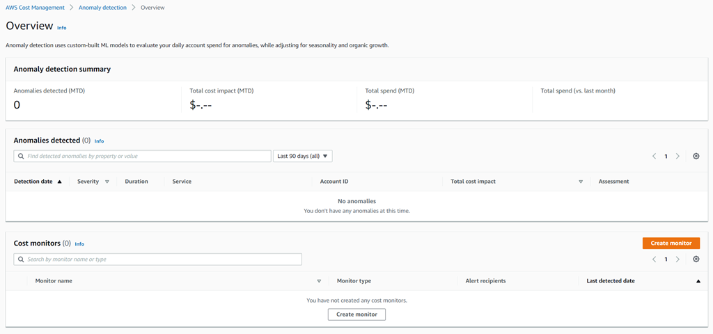 If Cost Explorer has been already enabled, access the Cost Management\Anomaly Detection blade