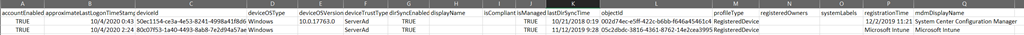 The list contains all relevant details of your AAD devices (enabled, last logon, device id, OS, join type (AAD or Hybrid)…)