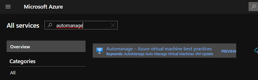 To start using Azure Automanage logon to your Azure portal (https://portal.azure.com) and search for automanage