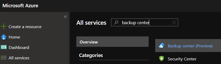 To start using the Backup Center, logon to your Azure portal (https://portal.azure.com) and search for Backup Center