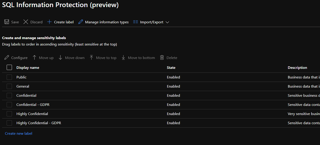 If you don’t have a data classification defined, you may still have already some recommendations based on the default information types defined by Microsoft (public, GDPR, confidential).