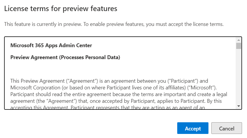 To enable it, logon to your Office 365 Apps administration center (https://config.office.com/) and access the one of the specific blades to enable the feature:
