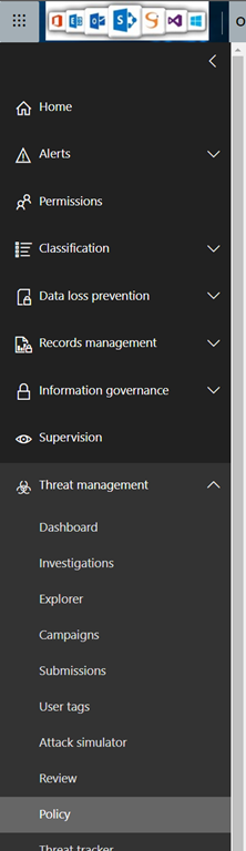 To start using it, logon to your Security & Compliance portal (https://protection.office.com/) and access the Threat management\Policy blade