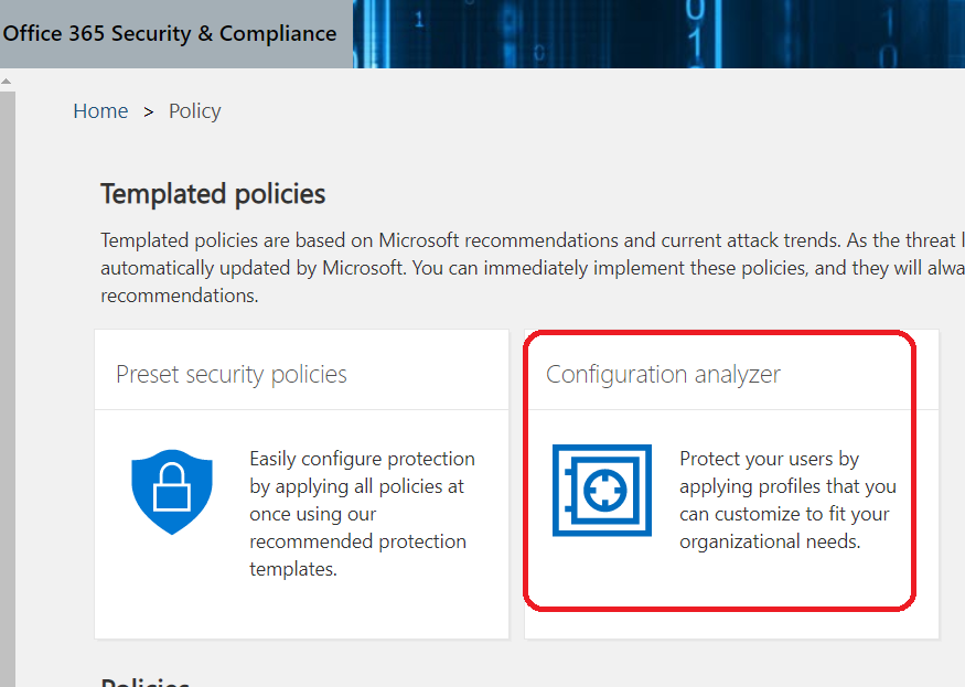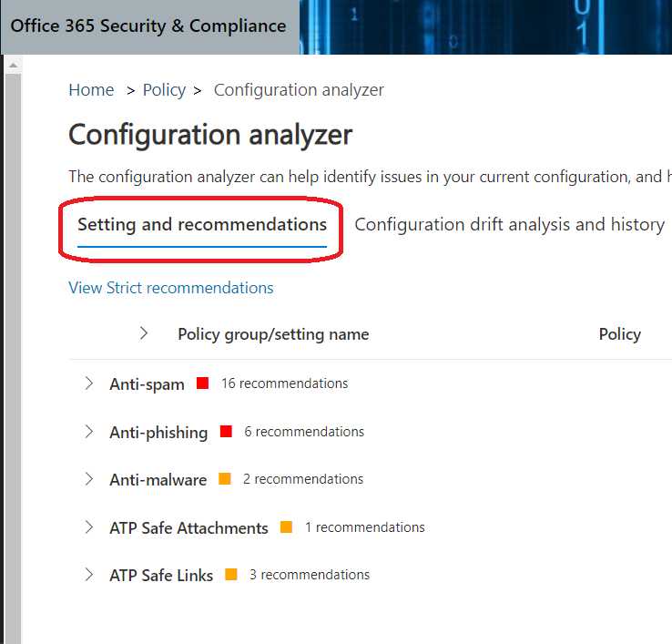 Well, you can now use a Configuration Analyzer to have a review of your configuration and adjust based on Microsoft recommendations.