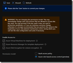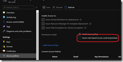 Then access the Access policies blade to enable the use of RBAC