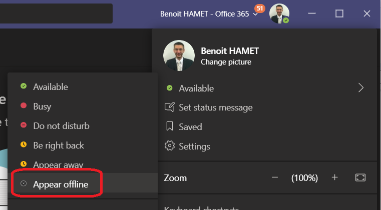 If you used Skype for Business in the past, you may know – especially Skype administrators – you had an option to appear offline while your client was still running (if your Skype administrator has made this status available).