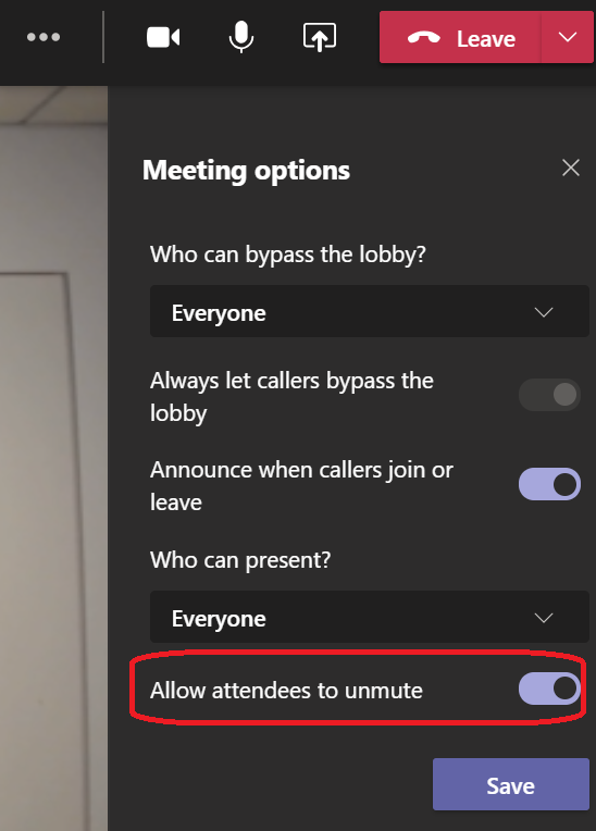 To use this capability, during a Teams meeting, the organizer has to go to the meeting option and then turn off the option ‘Allow attendees to unmute’ (by default they can continue to unmute themselves)