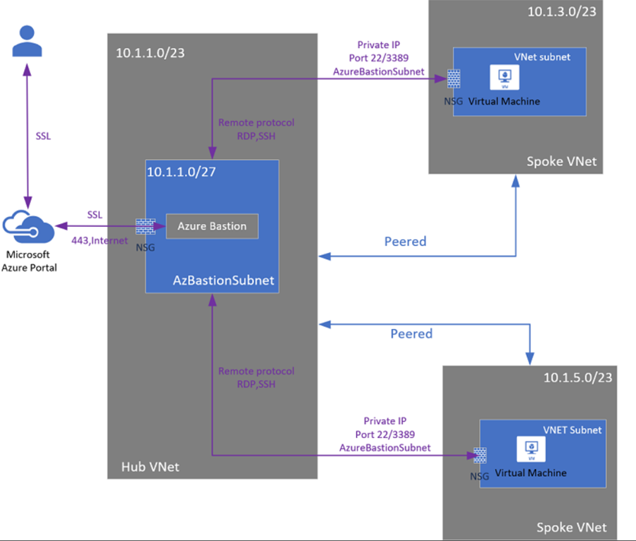 You have nothing to enable or implement – except off course 1 Azure Bastion instance and have the Vnet peered.