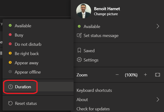 Well, you can now also define a duration when you set your availability status in Teams