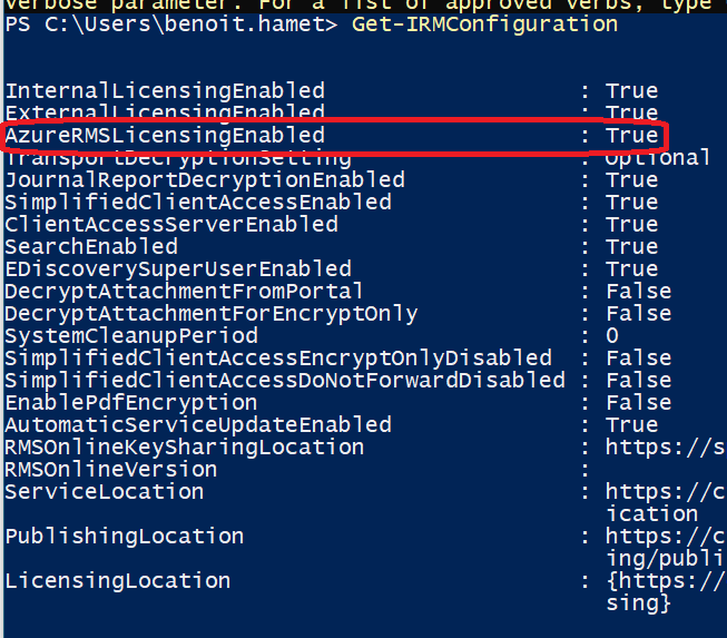 Set-IrmConfiguration -AzureRMSLicensingEnabled $true