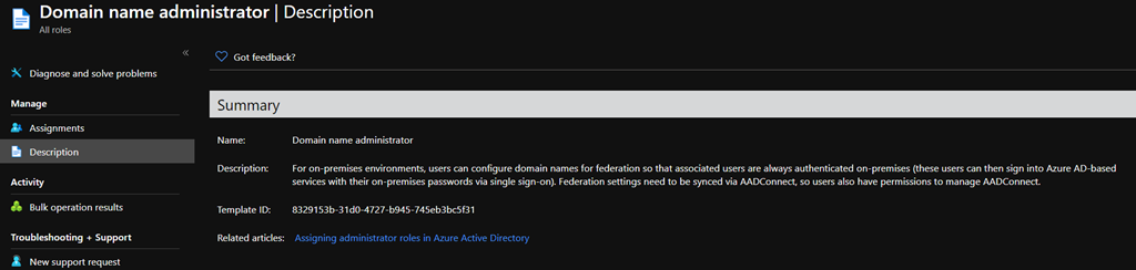 It allows you adding, validating and removing custom domain in Azure AD. It also includes the capability to set federation with on-premises.