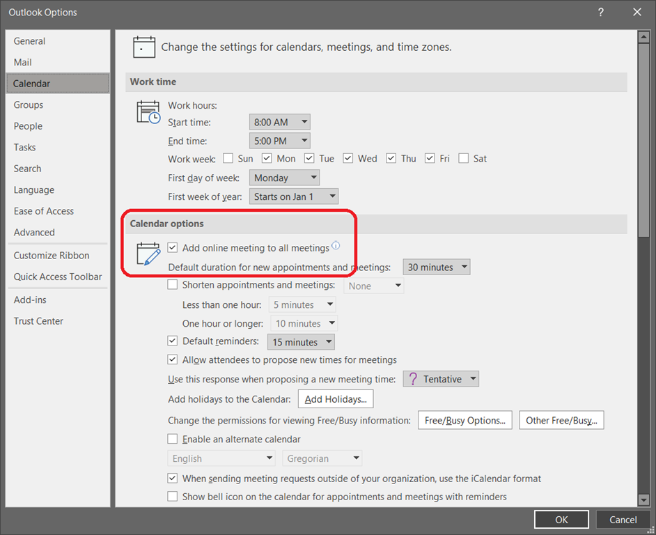 The option is turned on by default; you can manage it by accessing the Outlook options under the Calendar section
