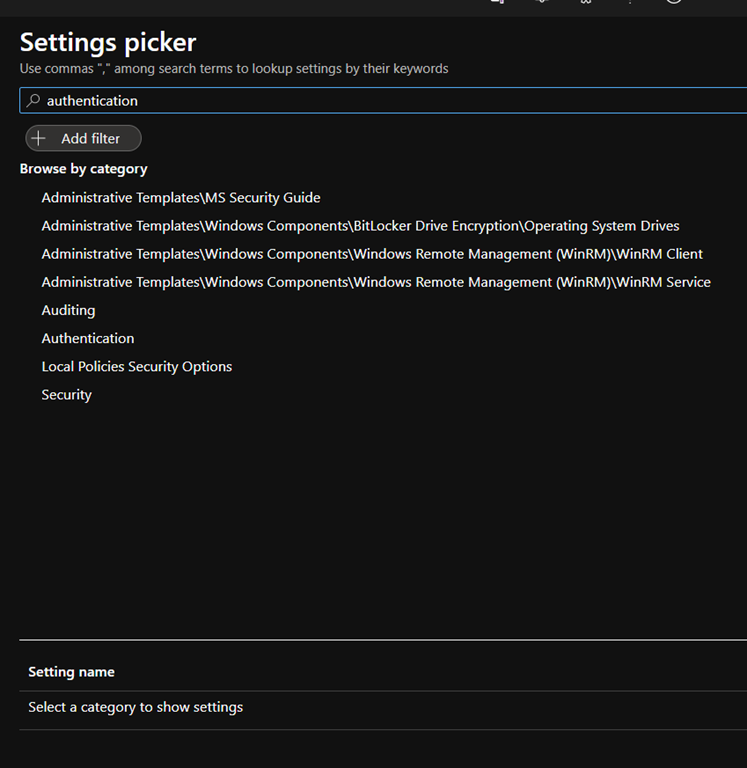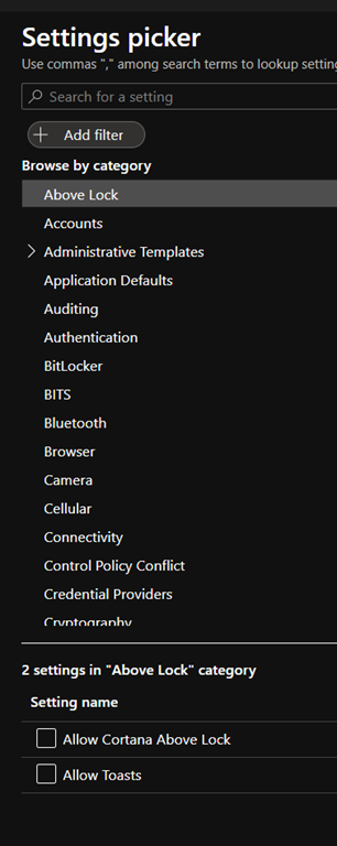 When creating a configuration profile using the new Settings Catalog, you can search/browse configuration category which then returns all the available configuration options