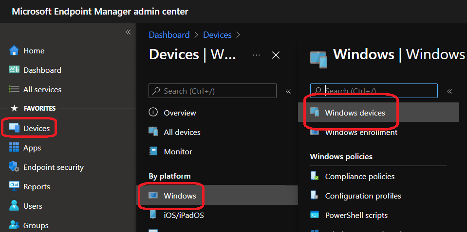 Then access the Devices\Windows\Windows Devices blade to select the device you want to capture the diagnostic logs
