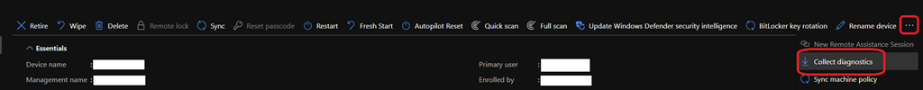 Once you have selected the device, use the Collect Diagnostics option from the action toolbar