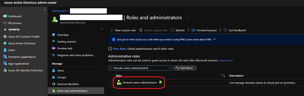 - Domain name administrator to delegate domain names management (add, read, remove or update the domain(s) associated with your Azure AD tenant)