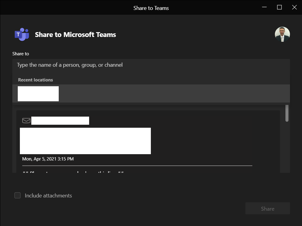 Until now, the only option was either copy/paste of the body and attachments, or a drag and drop of the email from Outlook to Teams – knowing the last option works only when using Outlook for Windows/Mac with Teams clients.