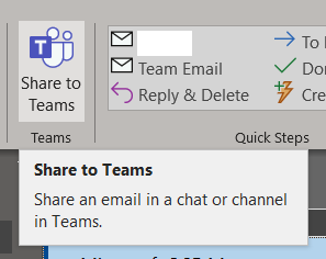 Well, it is now easier as you now have a Share to Teams button available on Outlook for Windows/Mac and Outlook Web Access.
