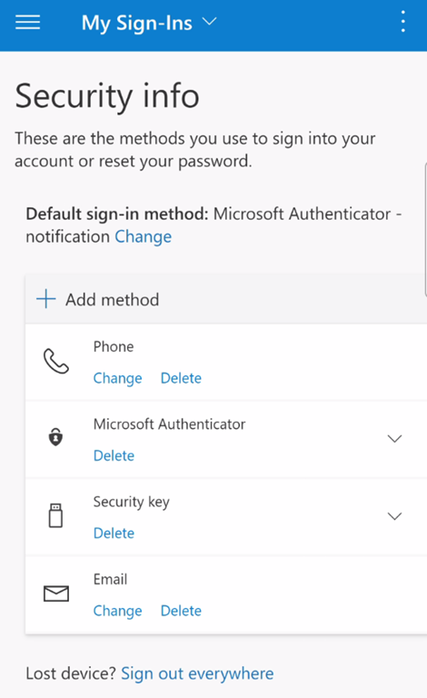 As you know, end-users can access the Microsoft My Sign-Ins website (https://mysignins.microsoft.com/) to manage their security information (register MFA authentication method, set the default MFA method…).