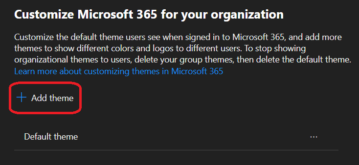 To do so, connect to your Office 365 administration portal (https://admin.microsoft.com/) and access the Settings\Org settings blade to edit the Custom themes settings under the Organization profile tab