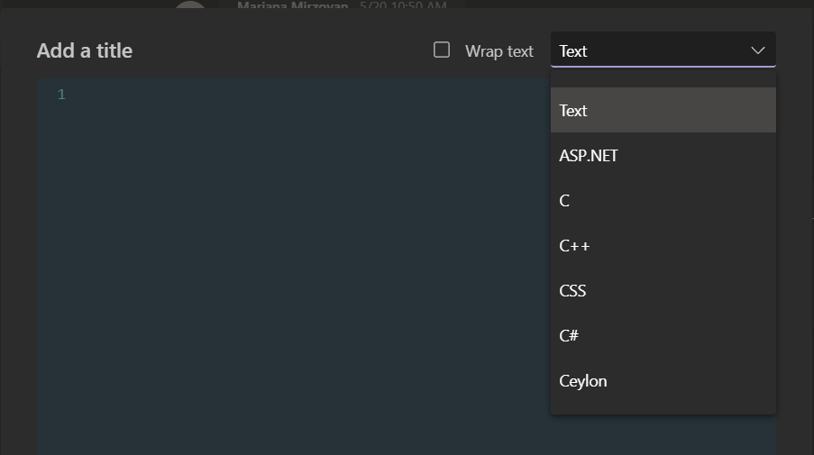 Well, the formatting options have evolved and now offer a ‘code snippet’ formatting to allow you sharing code while keeping the language-based color syntax