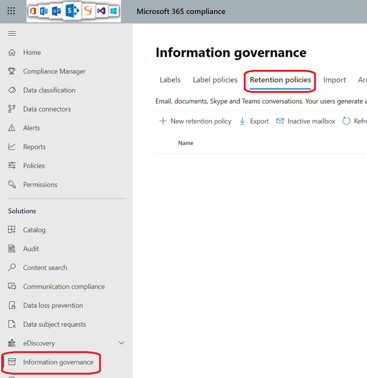 Logon to your compliance portal (https://compliance.microsoft.com/) and access the Information governance blade and then the Retention policies tab to create a new retention policy
