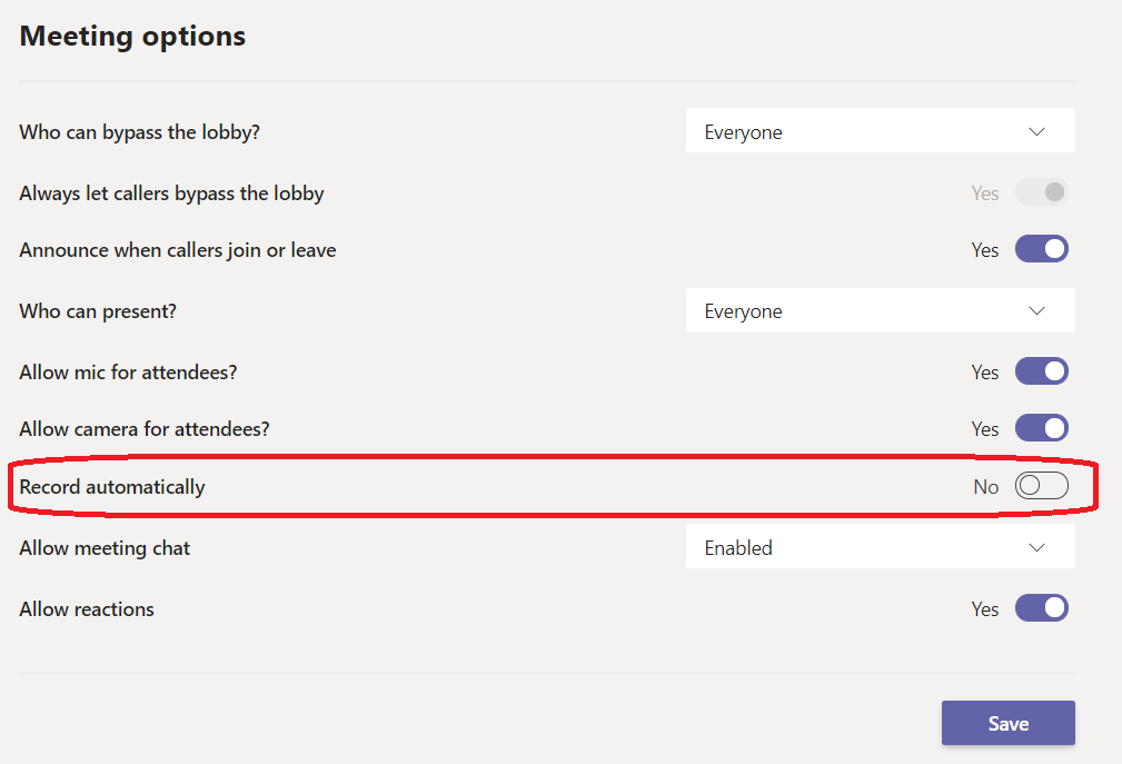 Off course this requires that the organizer has the AllowCloudRecording policy enabled as well as RecordingStorageMode set to OneDriveForBusiness as well as Stream.
