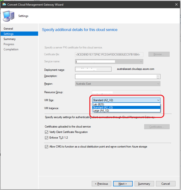 During the conversion (or if you deploy a new virtual machine scale set CMG) you can select the virtual machine SKU between the 3 available: