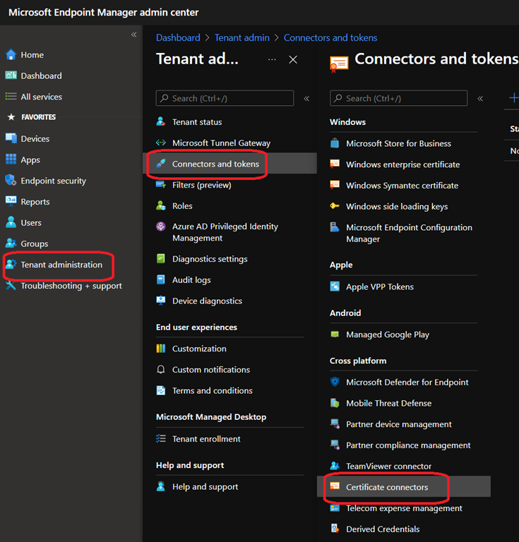 You can get the new unified connector from the Endpoint Configuration Manager portal by accessing the Tenant administration\Connectors and tokens\Certificate connector blade or using the direct link https://go.microsoft.com/fwlink/?linkid=2168535