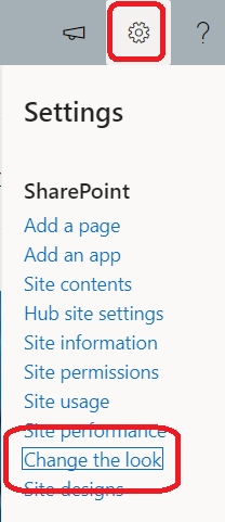 To enjoy this new navigation style, access your SharePoint site and open the Gear menu to access the Change the look option