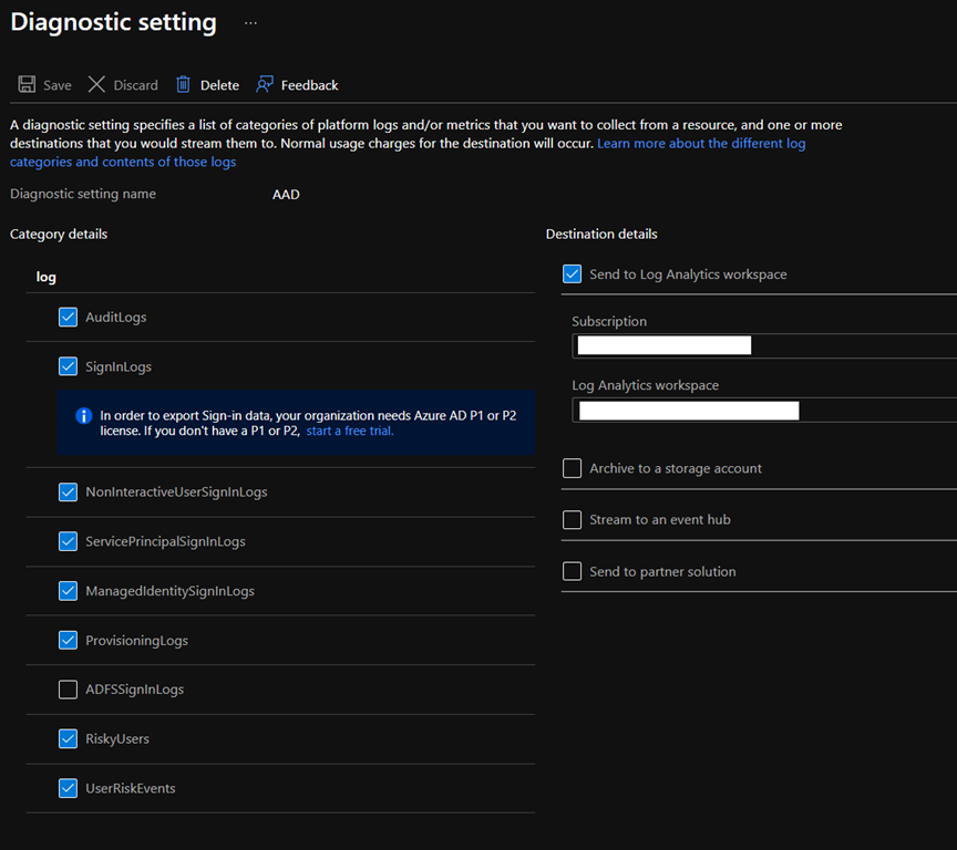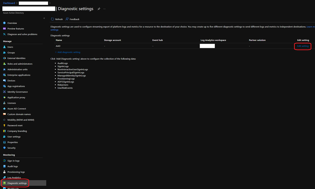 To be able to get it, you first need to have an Azure Log Analytics workspace created and then have configured the Diagnostic settings on your Azure AD to save the logs into the Log Analytics workspace