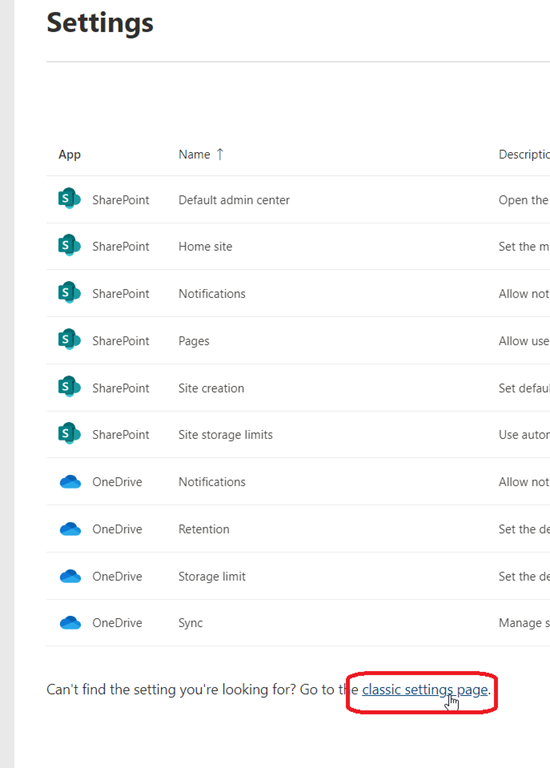 Then scroll down to the bottom of the page to access the Classic settings page link