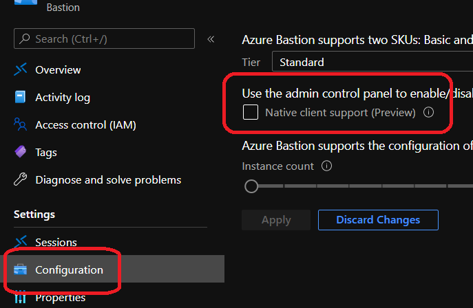 Just access the Configuration blade of your Bastion instance to enable the Native client support setting