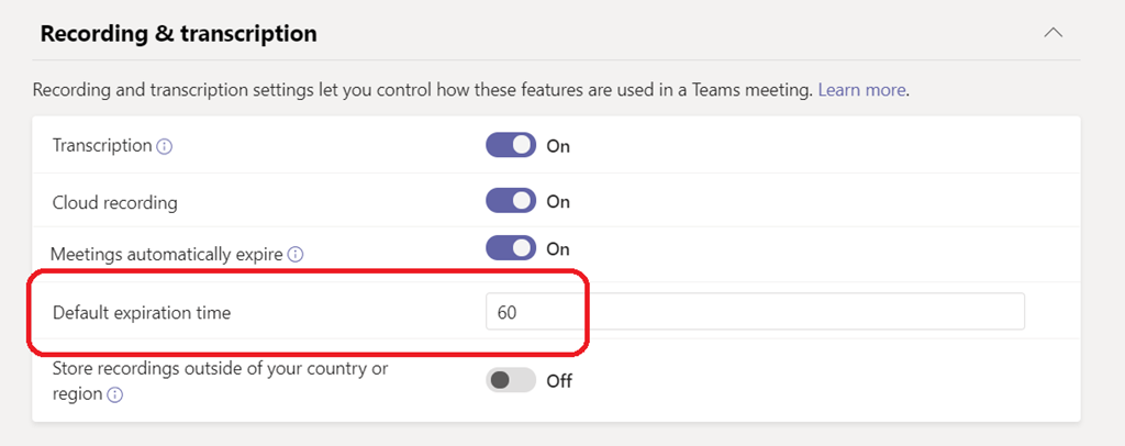 Then they can edit the policy/policies they need to update the default expiration time under the Recording & transcription section of the policy.