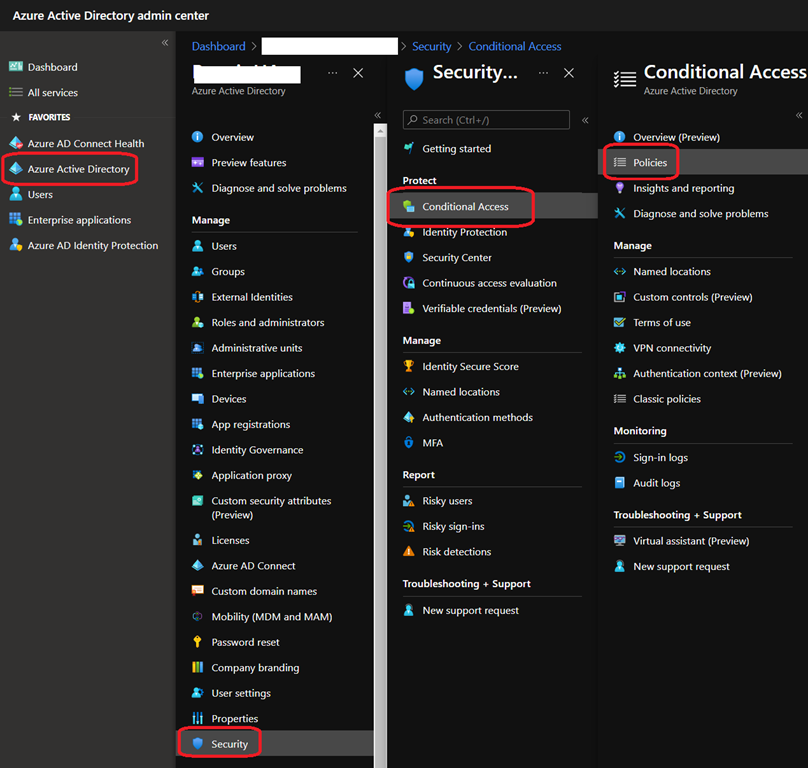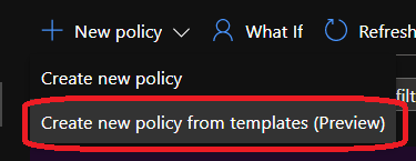 To create Conditional Access policy using templates, connect to your Azure AD portal (https://aad.portal.azure.com/) to access the Azure Active Directory\Security\Conditional Access\Policies blade and use the Create new policy using templates