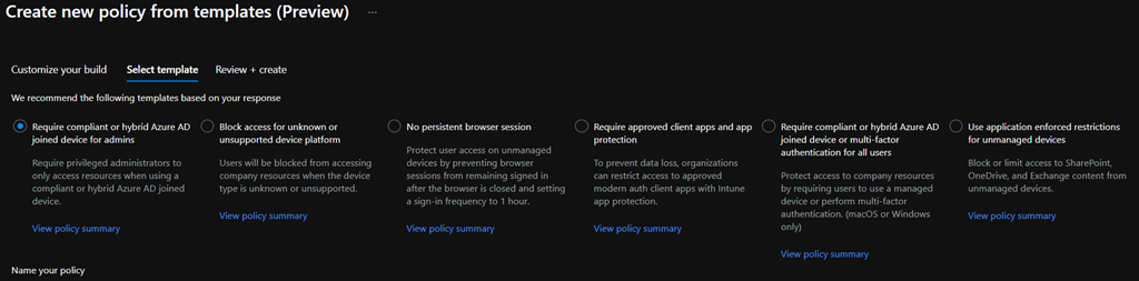 - Require compliant device or MFA for all users which is some sort of merger between the Device compliance and Require MFA for all users