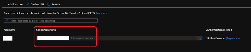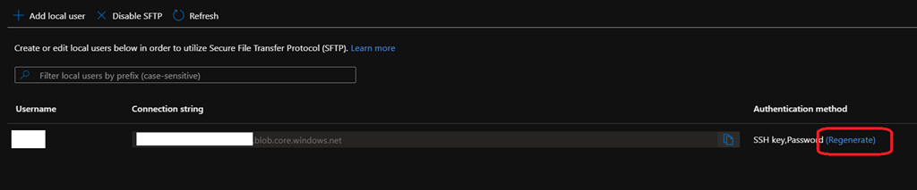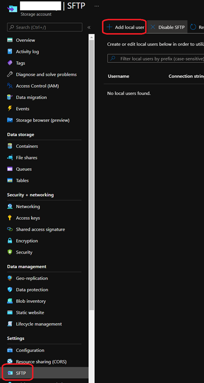 Once SFTP is enable, you can create user account to connect using SFTP by using the Add local user button