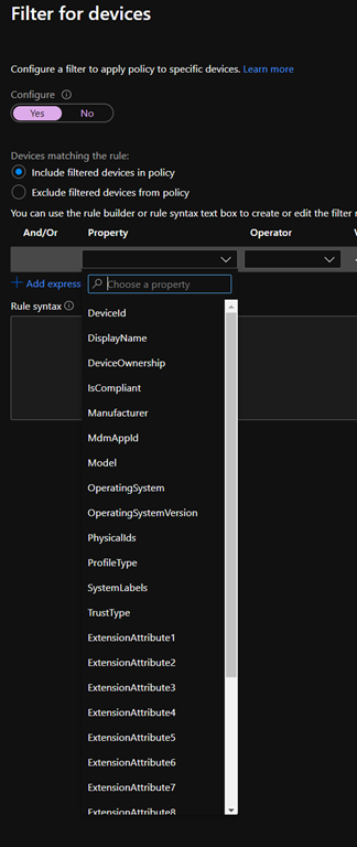 Good new, you can now configure filters when configuring your Conditional Access policy to ensure this applies only to specific devices.