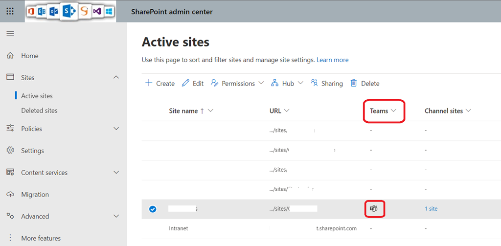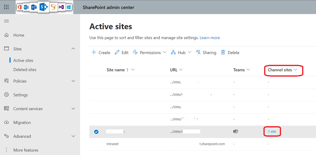 In addition you can now know the number of channels a specific Teams has thanks to the new Channel sites column