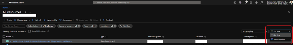 As you know, when you use the Azure portal you can view all resources deployed within your environment either by using the ‘All Resources’ option, selecting a specific Azure resource type (like virtual machine, virtual network….) or from the Overview of a resource group.