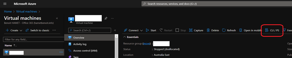 For those managing Azure resources mainly from the portal, especially virtual machines, and want to learn more about PowerShell or Azure Cli command to manage these virtual machines, you can now get the most frequent commands pre-configured for a specific virtual machine.