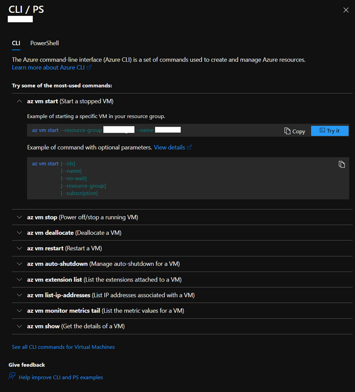 Azure – You can now get most frequent PowerShell/Azure Cli commands to manage virtual machine from the portal