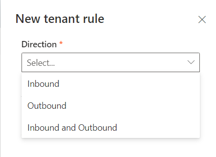 Then using the New tenant rule button you will be able to create policies to manage inbound, outbound or both to and from your tenant with selected external tenants.
