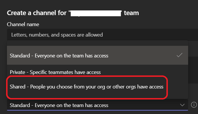 To create a shared channel, use your Teams client on Windows and access the Teams on which you want to create such shared channel