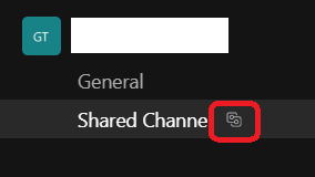 Once created, the shared channel can be identified with the “S” icon on the right side of the channel name