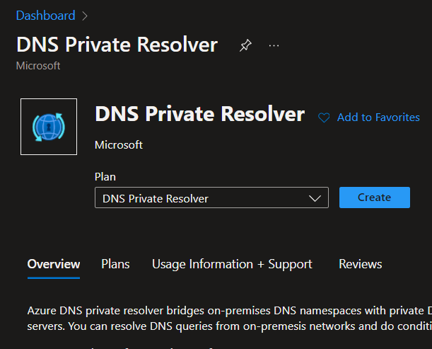Then you can create the DNS Private Resolver by accessing this specific blade (this is not yet directly available in the Marketplace)