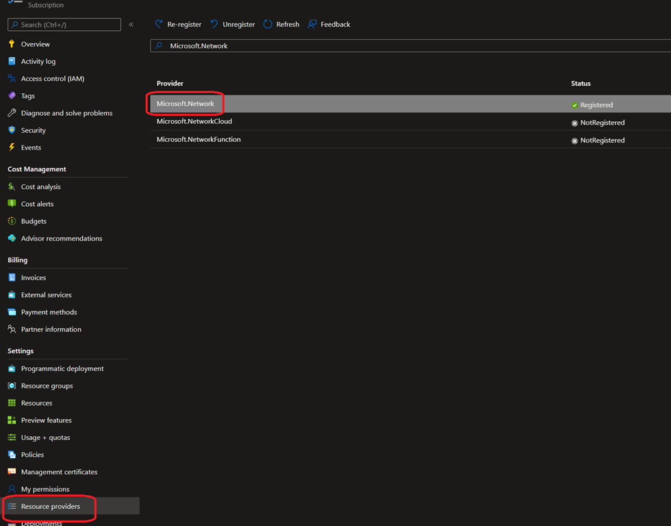Now, if you want to take advantage of this new DNS capability you will first need to register the Microsoft.Network provider namespace (if not yet registered) by accessing the Resource Providers blade in your subscription