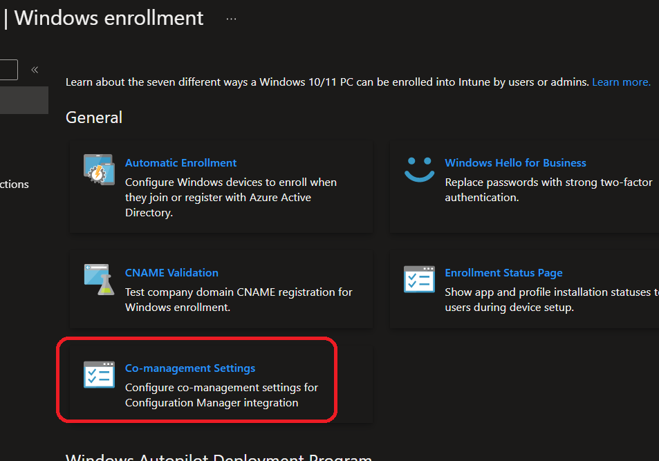 There you will now see a new option Co-management settings
